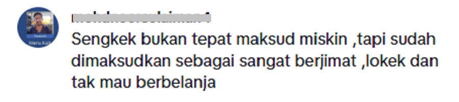 Penjelasan itu mencetuskan pelbagai pandangan netizen. Seorang netizen berkata, “Sengkek bukan tepat maksudnya miskin, tapi lebih kepada sangat berjimat, lokek dan tak mahu berbelanja.”