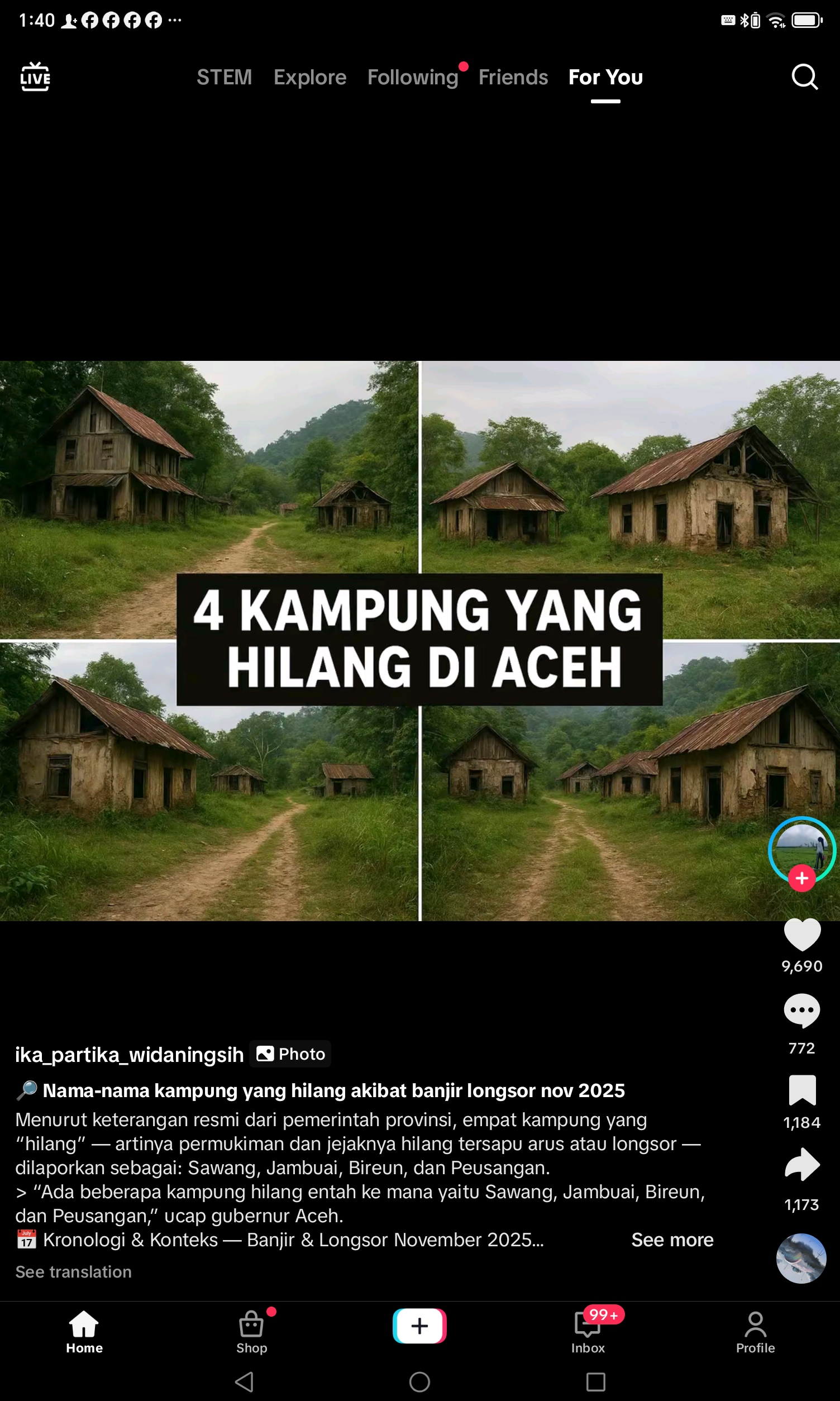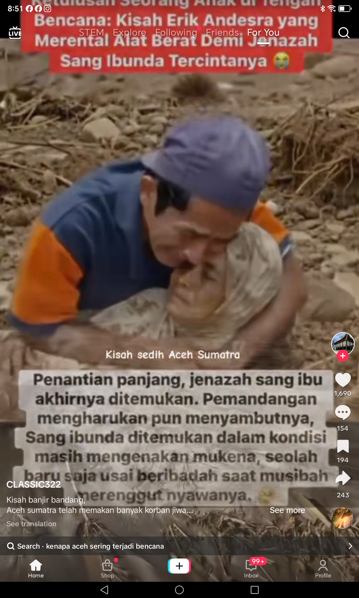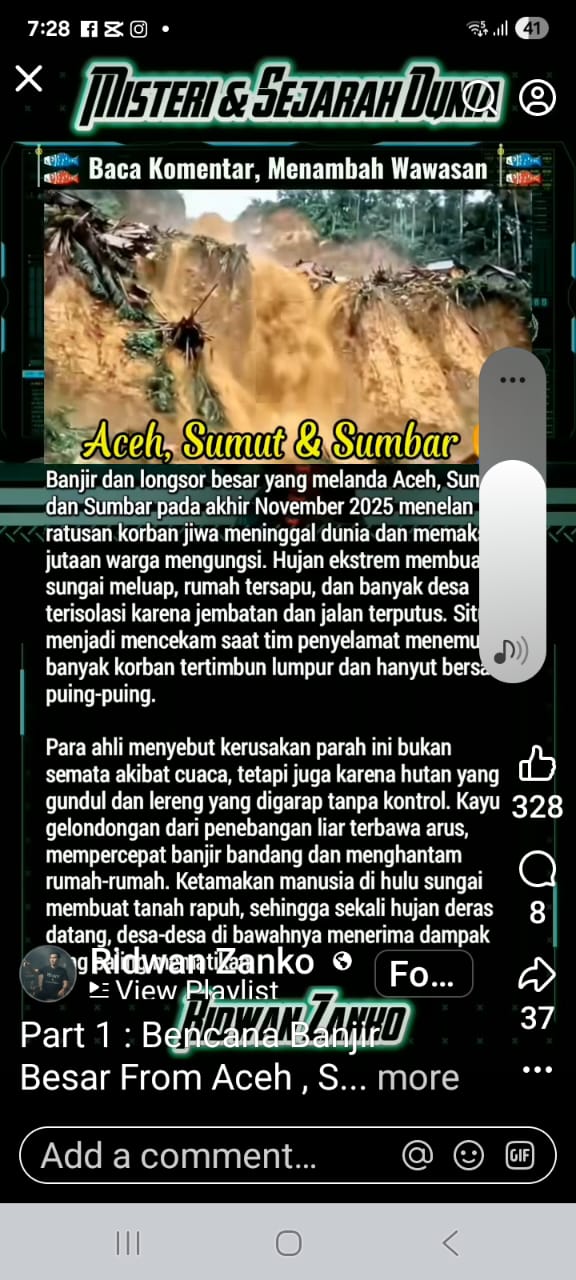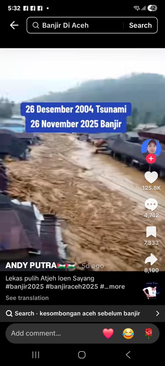 Ini adalah antara kisah yang meruntumkan jiwa netizen dan sejarah banjir lumpur dan arus deras bersama sisa balak yang mencatatkan antara sejarah pahit selepas tsunami melanda Acheh pada 2004.