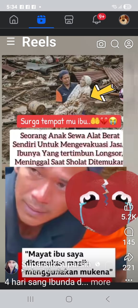 Ibu meninggal dunia akibat rumah mereka di Acheh terbabit dalam banjir lumpur setinggi bumbung rumah. Hati anak berkecai kerana itulah dakapan terakhir seorang ibunya dalam keadaan sedang tidur lena.