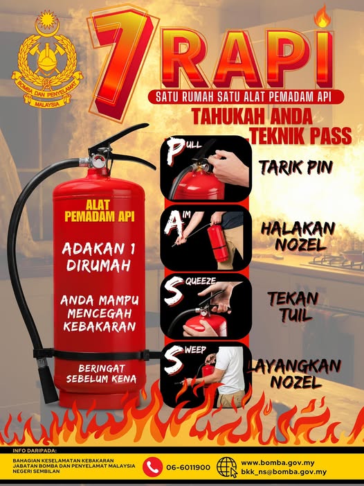 Kesedaran dan ilmu pengetahuan bermula dari rumah dengan penggunaan yang betul alat pemadam api oleh isi rumah mampu mencegah serta mengawal kebakaran kecil daripada merebak ke ruang lain di rumah.