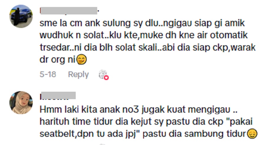 Malah, ramai juga yang berkongsi pengalaman sama mengenai anak masing-masing. Masing-masing mempunyai cerita tersendiri. Menurut salah seorang netizen, anak sulungnya juga pernah mengigau melakukan solat.