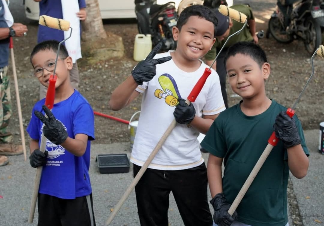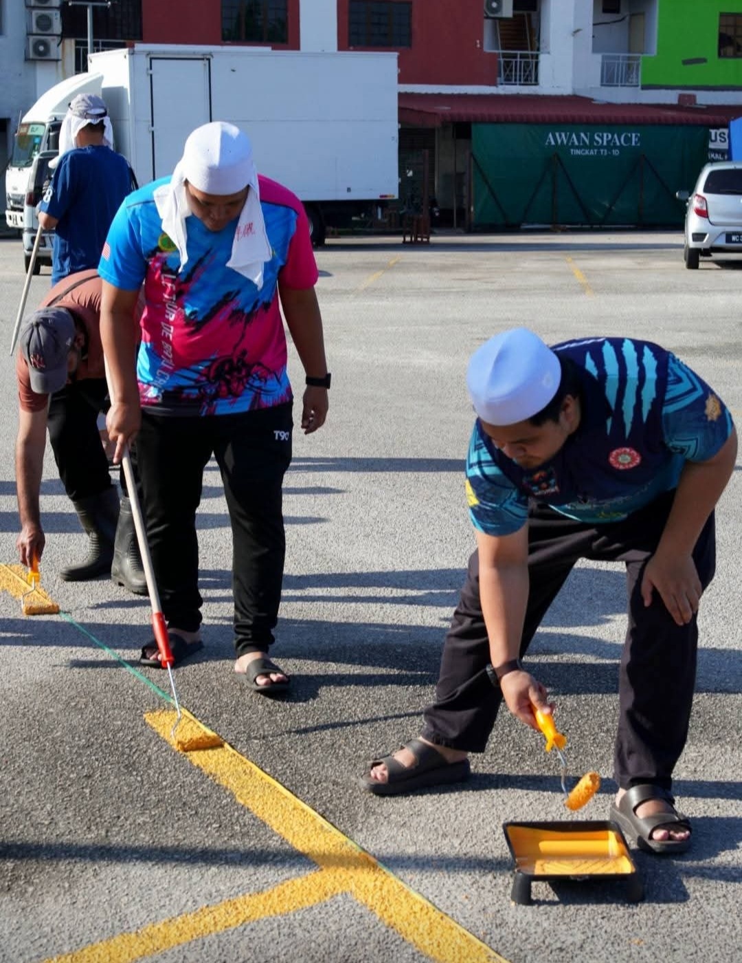 Mengecat tapak parkir kenderaan turut dilaksanakan secara gotong-royong.