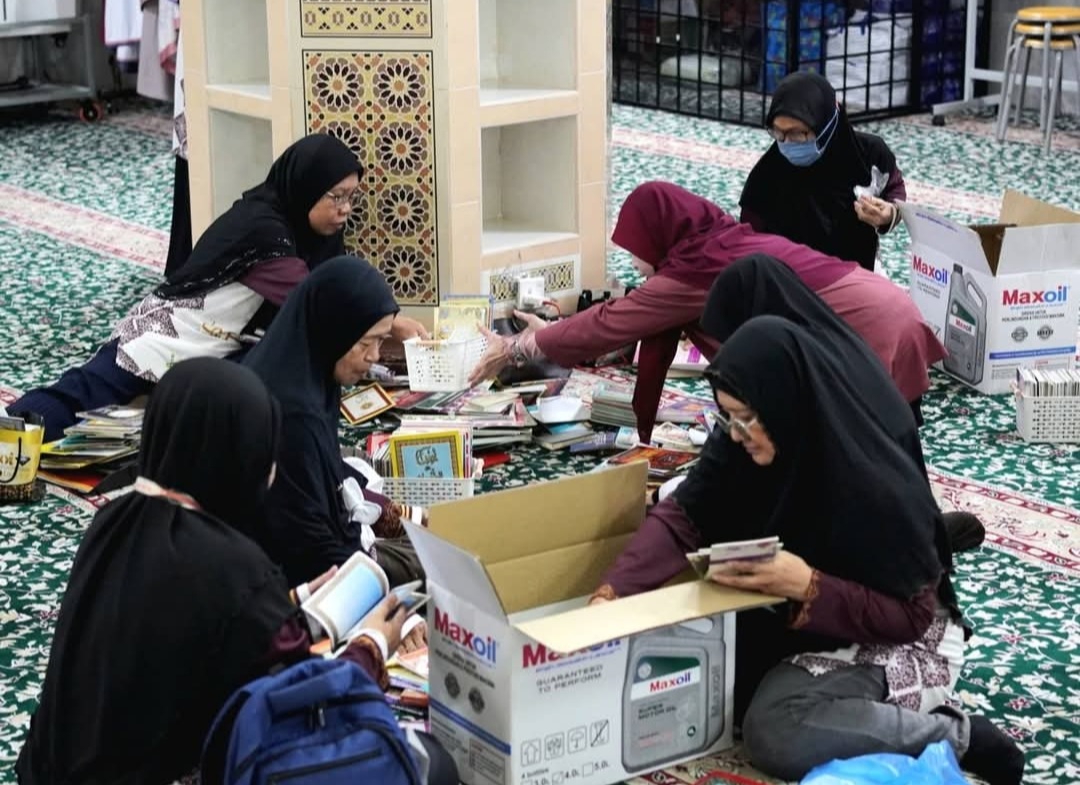 Selain itu menyusun al-Quran dan buku-buku di ruang solat juga menarik minat kaum Muslimat untuk turut sama menzahirkan keringat.