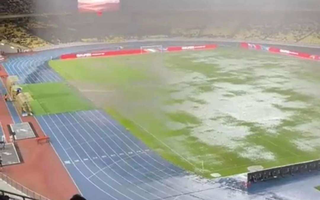 Semalam, tular beberapa petugas dilihat menggunakan penyodok dan kadbod dalam usaha mengatasi masalah air bertakung di Stadium Nasional selepas hujan lebat yang mengakibatkan hampir sepenuhnya permukaan padang digenangi air.