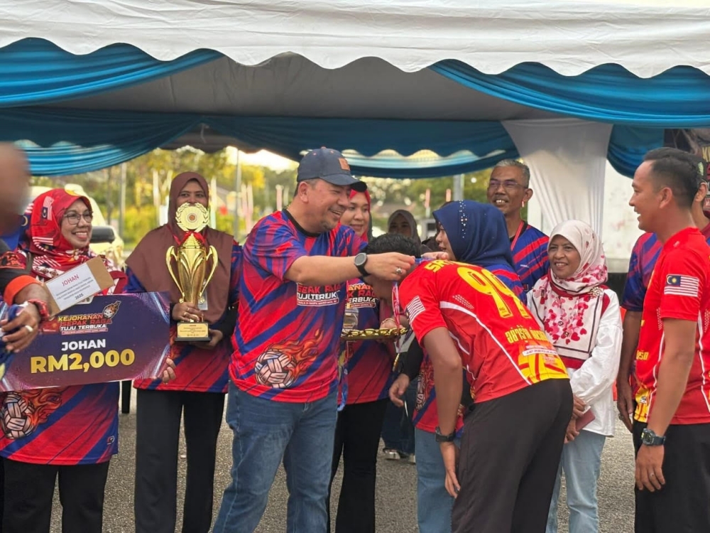 Hadiah kepada semua pemenang disampaikan oleh Setiausaha Agung Dewan Perniagaan Melayu Malaysia (DPMM), Datuk Mazrul Nizam Abdullah pada kejohanan bagi merebut piala Ketua UMNO Bahagian Merbok, Datuk Shaiful Hazizi Zainol Abidin. - KitaReporters