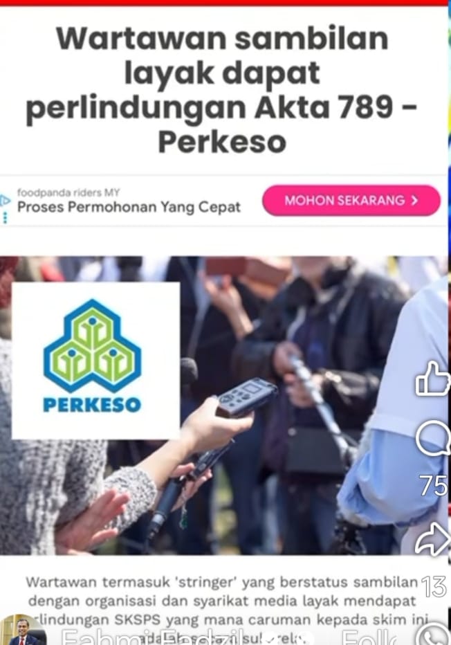 AKHIRNYA buat pertama kalinya, Opah dan mungkin juga pengamal media sambilan (stringers) berasa sangat lega dan bersyukur sangat apabila kerajaan memberi pengiktirafan kepada kerja wartawan sambilan ini dalam membuat laporan berita dan menikmati skim perlindungan keselamatan Perkeso serta mungkin juga dapat rasa hasil simpanan daripada skim i-Sara KWSP.