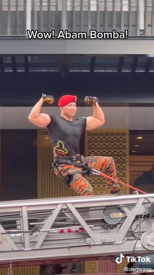 "Hari ini ada orang yang putus urat, melihat aksi badan abam bomba ni," demikian kata seorang netizen lain ketika menjawab komen paparan video mereka dalam Facebook selepas perarakan Hari Kebangsaan Ke-65 itu..