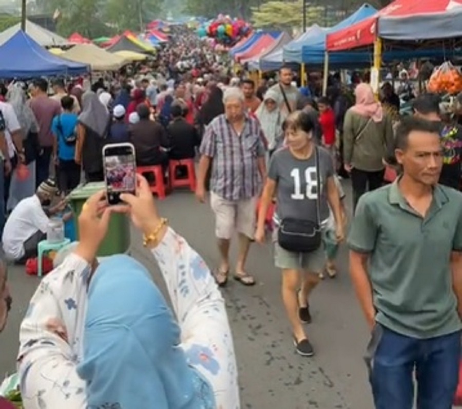 Dalam video yang dimuat naik dalam media sosial, kelihatan jalan-jalan di pekan sehari itu sesak dengan pengunjung seawal pagi, masing-masing sibuk memilih dan membeli barangan kegemaran mereka.
