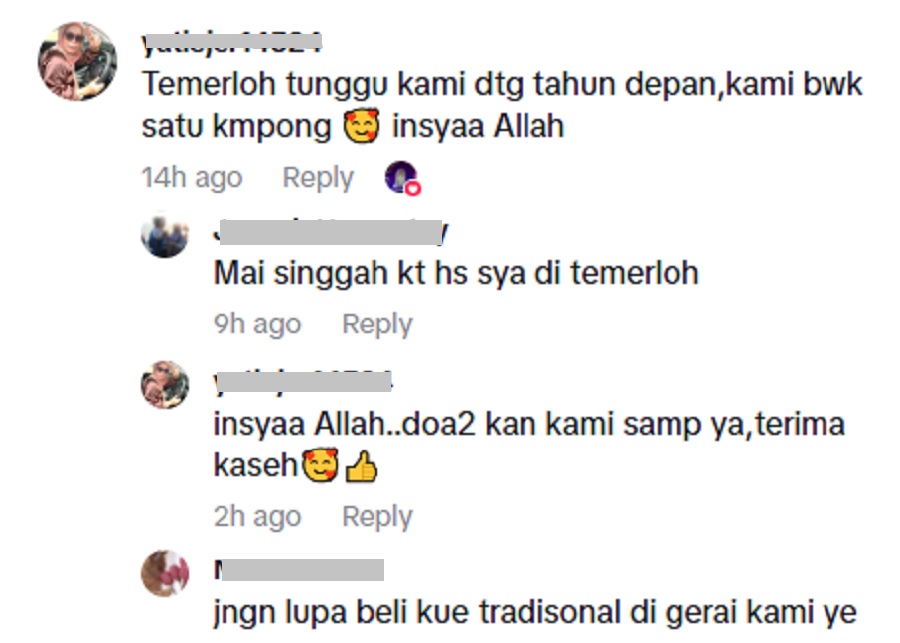 “Temerloh tunggu kami datang tahun depan. Kami bawa satu kampung, insya-Allah,” tulis salah seorang netizen yang meninggalkan komen lucu.