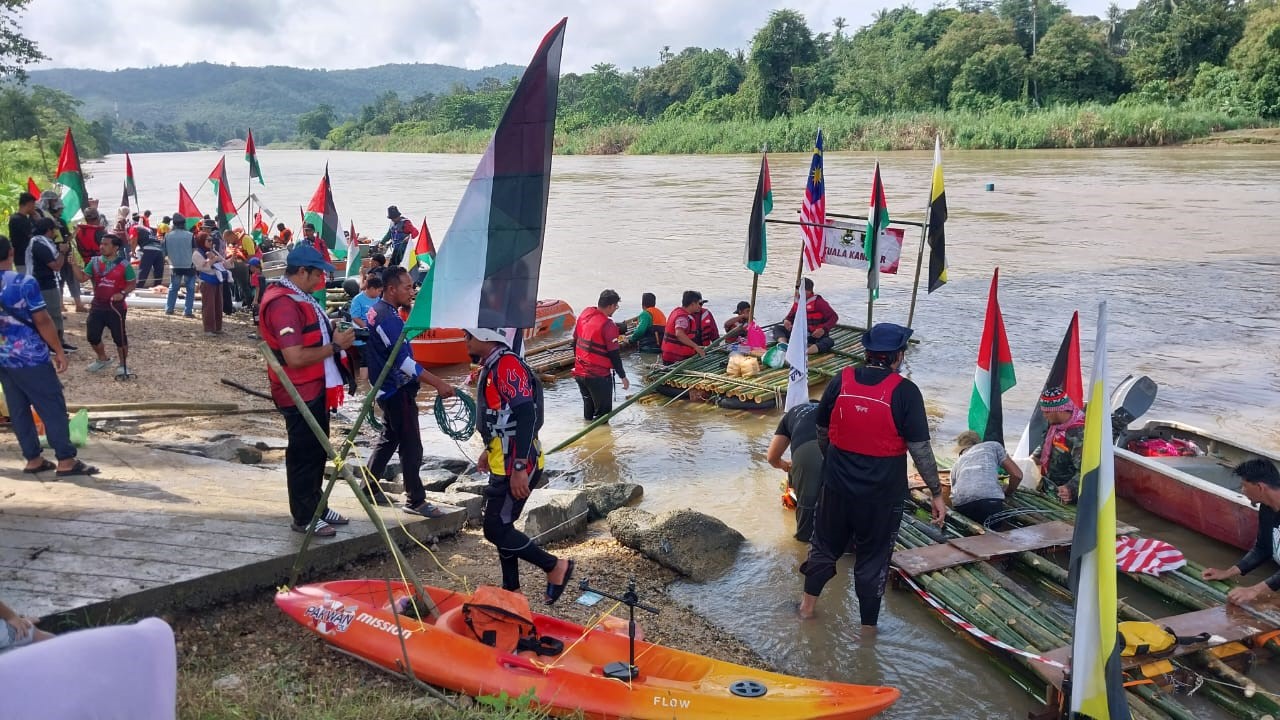 Suasana penuh semangat dan kesatuan jelas terpancar pada wajah ratusan peserta yang menyertai program Eksplorasi Rakit Flotilla For Palestine di Sungai Perak yang bermula dari Jeti Jambatan Victoria sehingga ke Jeti Dataran Kuala Kangsar.