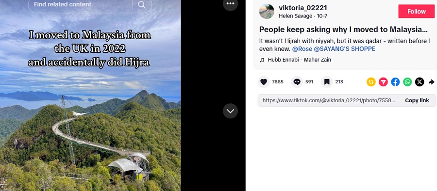 Menerusi hantaran dalam akaun TikTok miliknya, @viktoria_02221, Helen menulis kapsyen ringkas tetapi penuh makna: “Orang ramai sering bertanya mengapa saya berpindah ke Malaysia.
