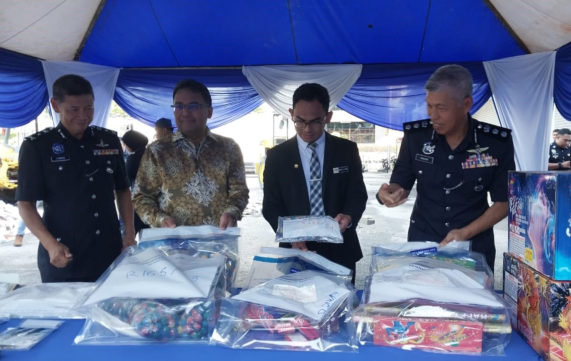 kotak mercun dan 41 bungkusan mercun pelbagai jenama dengan nilai RM15,000 dan kes