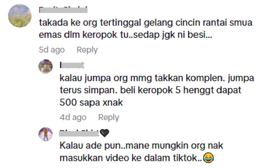 Video berkenaan menarik perhatian ramai pengguna TikTok yang turut meluahkan rasa terkejut dan bimbang.