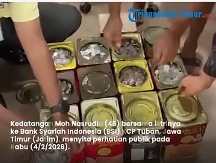 Dan pengurus bank, Riyanto, yang kebetulan berada di kaunter pertanyaan untuk bertanya sesuatu dengan pekerja di kaunter terkejut melihat Moh Nasrudin dan isteri bersama beberapa tin duit syiling itu.