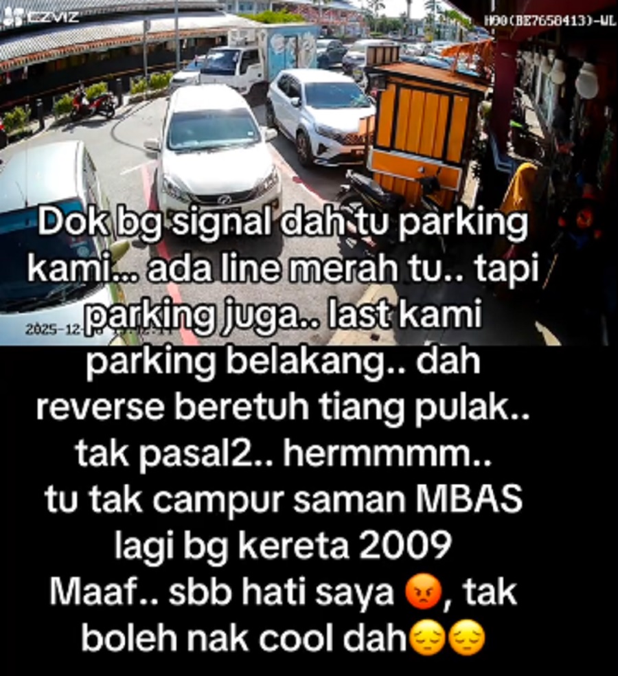 “Habis tu nak kata kami salahlah ni. Orang masuk parking line merah yang kami dah sewa RM450 untuk 3 bulan, tak salah,” katanya geram apabila netizen seolah-olah menyalahkannya.