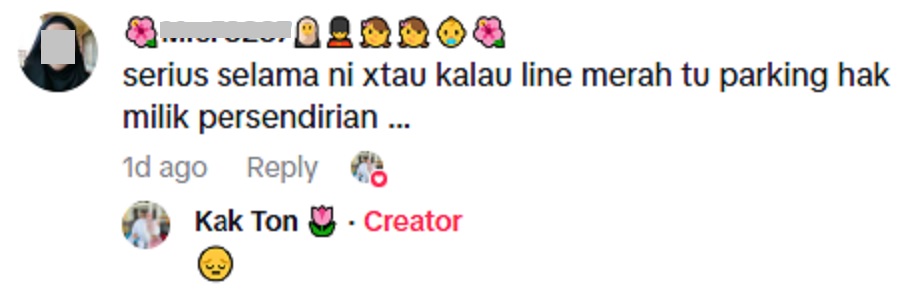 Lebih mengejutkan, masih ramai netizen yang tidak mengetahui bahawa garisan merah sebenarnya menandakan lot parkir khas yang telah dibeli atau disewa, bukan ruang umum untuk sesiapa sahaja.