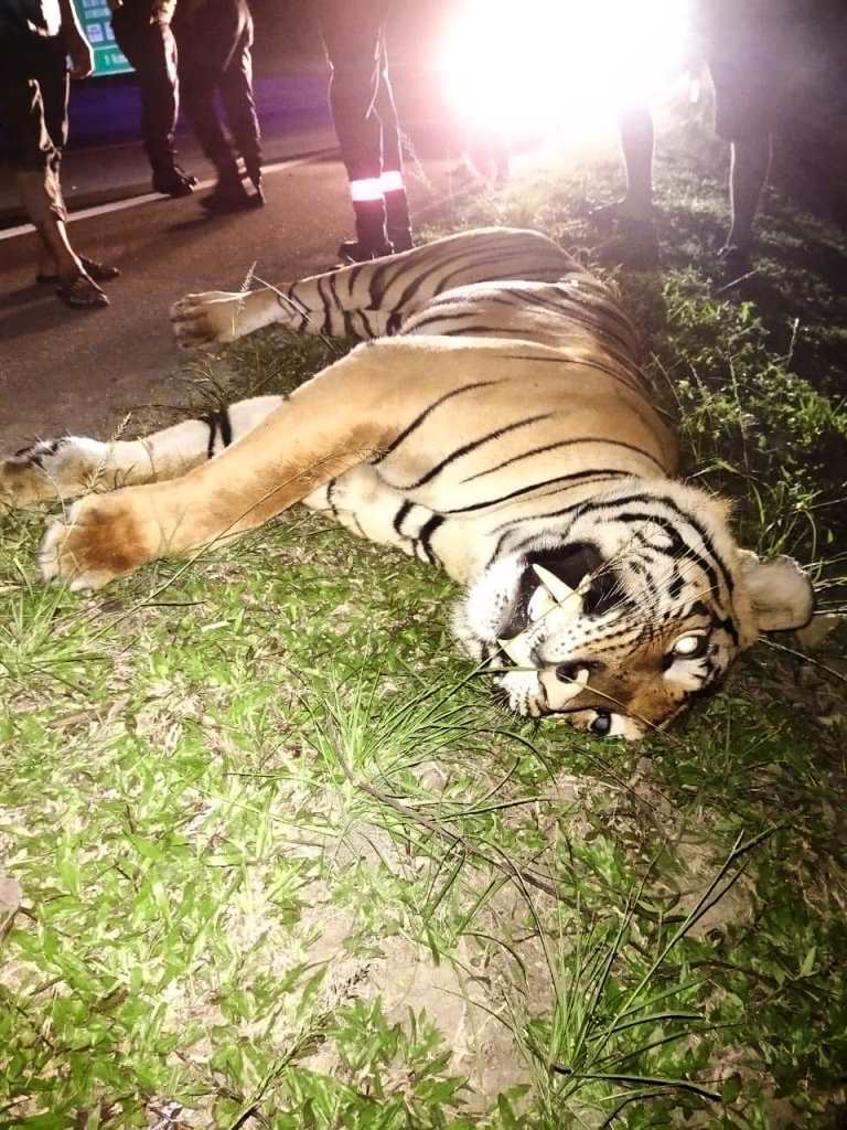 Salah seekor harimau belang yang mati dilanggar kenderaan ketika melintas jalan.- Kredit foto: TVSProjek bernilai RM66 juta itu bukan sekadar struktur konkrit. Ia akan berbentuk jejambat setinggi lapan meter sepanjang 200 meter, merentangi jalan raya yang sebelum ini sering menjadi “garisan maut” buat haiwan liar.
