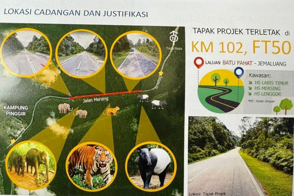 Gambar rajah lintasan hidupan liar yang akan dibina di Jalan Kahang - Mersing di Johor bagi memastikan kemalangan melibatkan haiwan-haiwan liar di kawasan tersebut dapat dielakkan. - Kredit foto : Facebook Ah Soon.