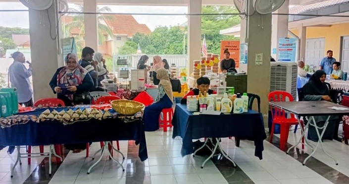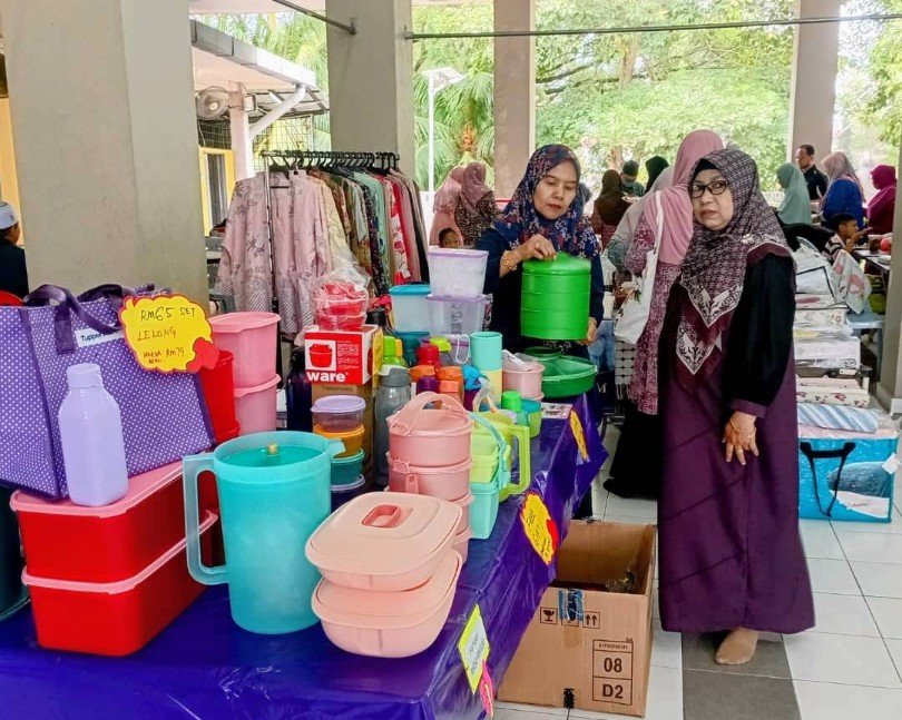 Usahawan muslimah mengambil peluang program Kuliah Ambang Merdeka untuk menjual pelbagai produk barangan dengan harga berpatutan.
