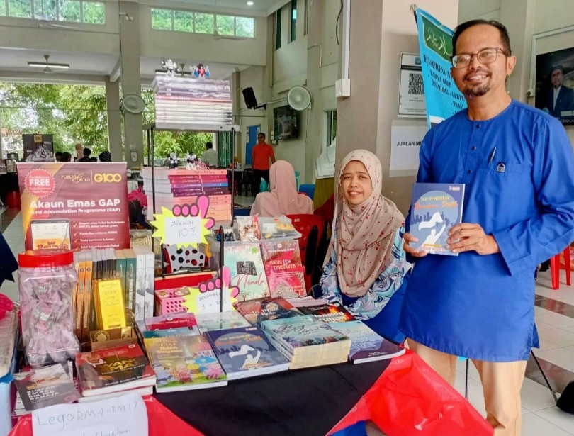 Penerbit dan usahawan, Nor Hairulnizam Wahid menjual buku tulisannya sempena Program Kuliah Ambang Merdeka.