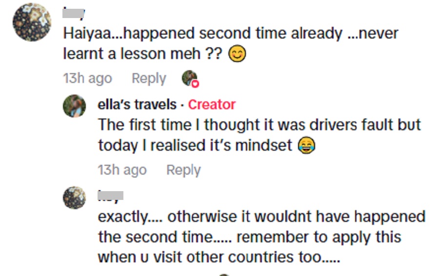 Sementara itu, netizen lain pula memberi tip agar Ella memilih tempat duduk berhampiran pemandu supaya mudah diperhatikan jika situasi sama berulang.