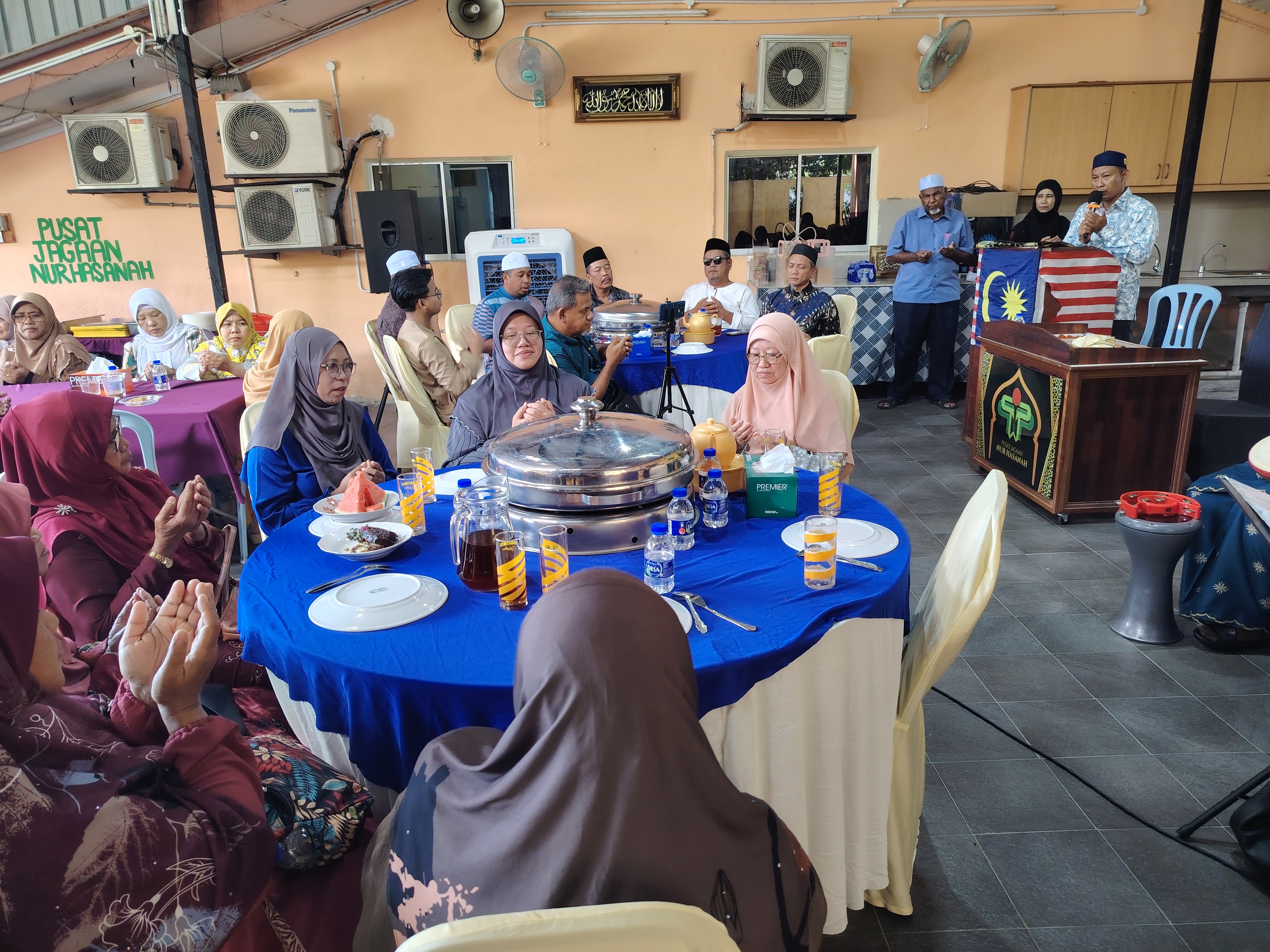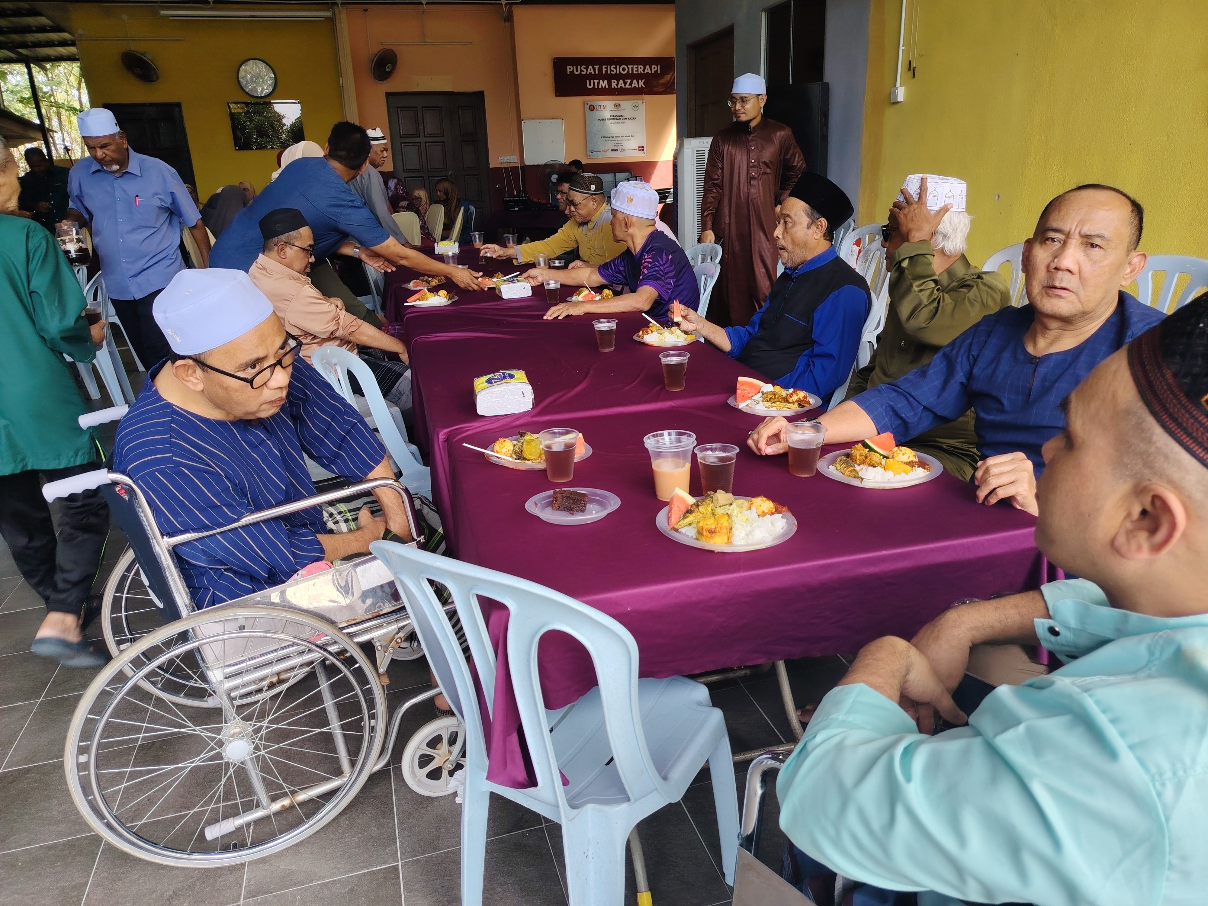 Sebahagian warga emas PJNH menunggu hidangan makan tengah hari yang diagihkan oleh sukarelawan pada majlis itu.