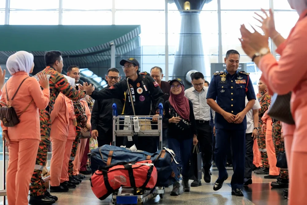Anggota Pasukan Khas Udara Bomba (PASKUB) di Pangkalan Udara Wilayah Tengah, Jabatan Bomba dan Penyelamat Malaysia (JBPM) itu menaiki penerbangan Malaysia Airlines (MAS) dari Lapangan Terbang Antarabangsa Kuala Lumpur (KLIA) pukul 8.00 malam pada Isnin, 7 April 2025.