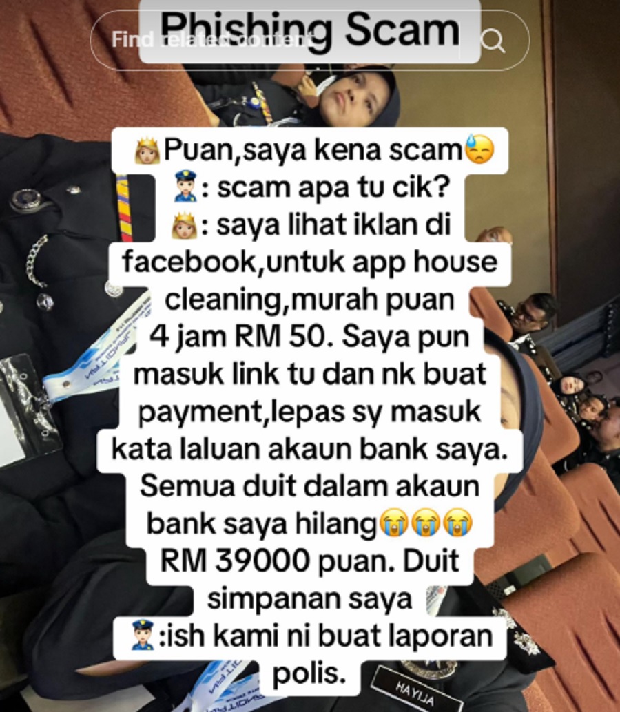 “Sekali tekan link, duit lesap. Bukan jumlah kecil, duit nak rawat penyakit pun hilang,” ceritanya.
