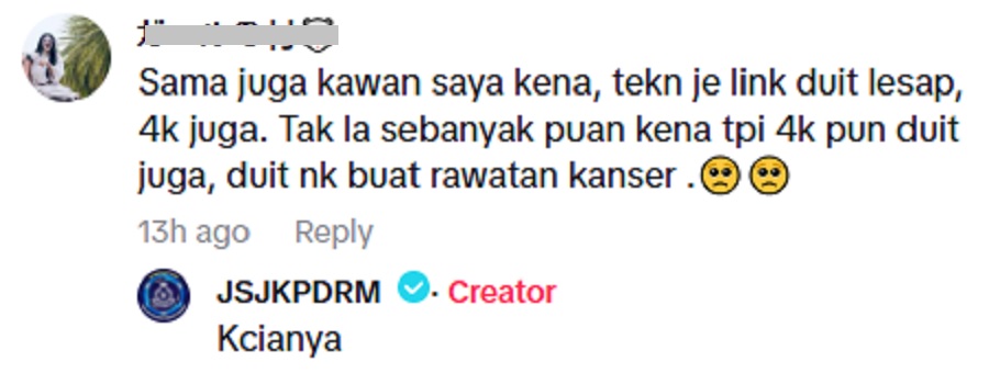 Lebih menyayat hati, seorang netizen mendedahkan kawannya kerugian RM4,000 yang sepatutnya digunakan untuk rawatan kanser.