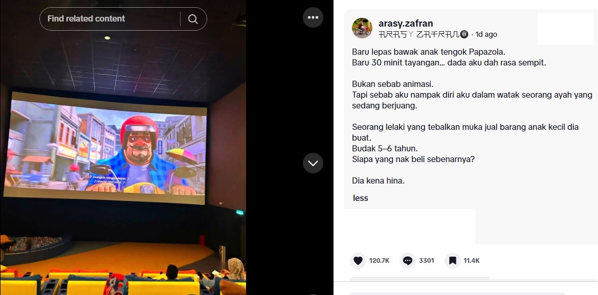 Katanya, baru 30 minit tayangan bermula, dadanya sudah terasa sempit. “Bukan sebab animasi. Tapi sebab aku nampak diri aku dalam watak seorang ayah yang sedang berjuang.