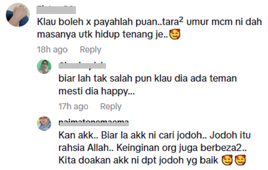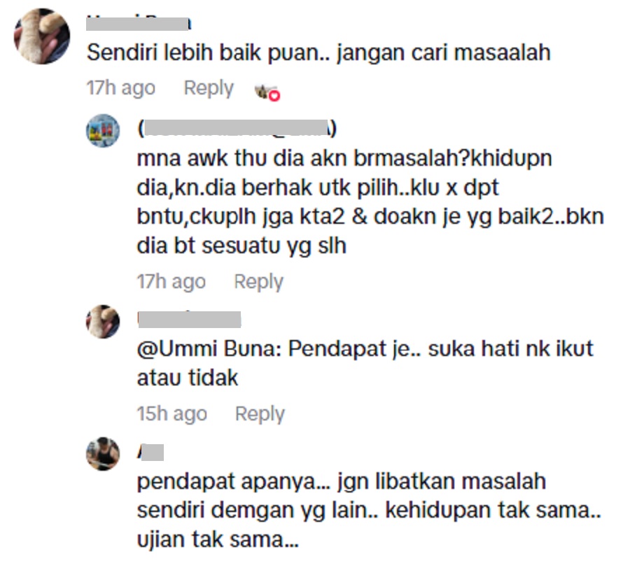 dah masanya untuk hidup tenang je,” ujar netizen tersebut.