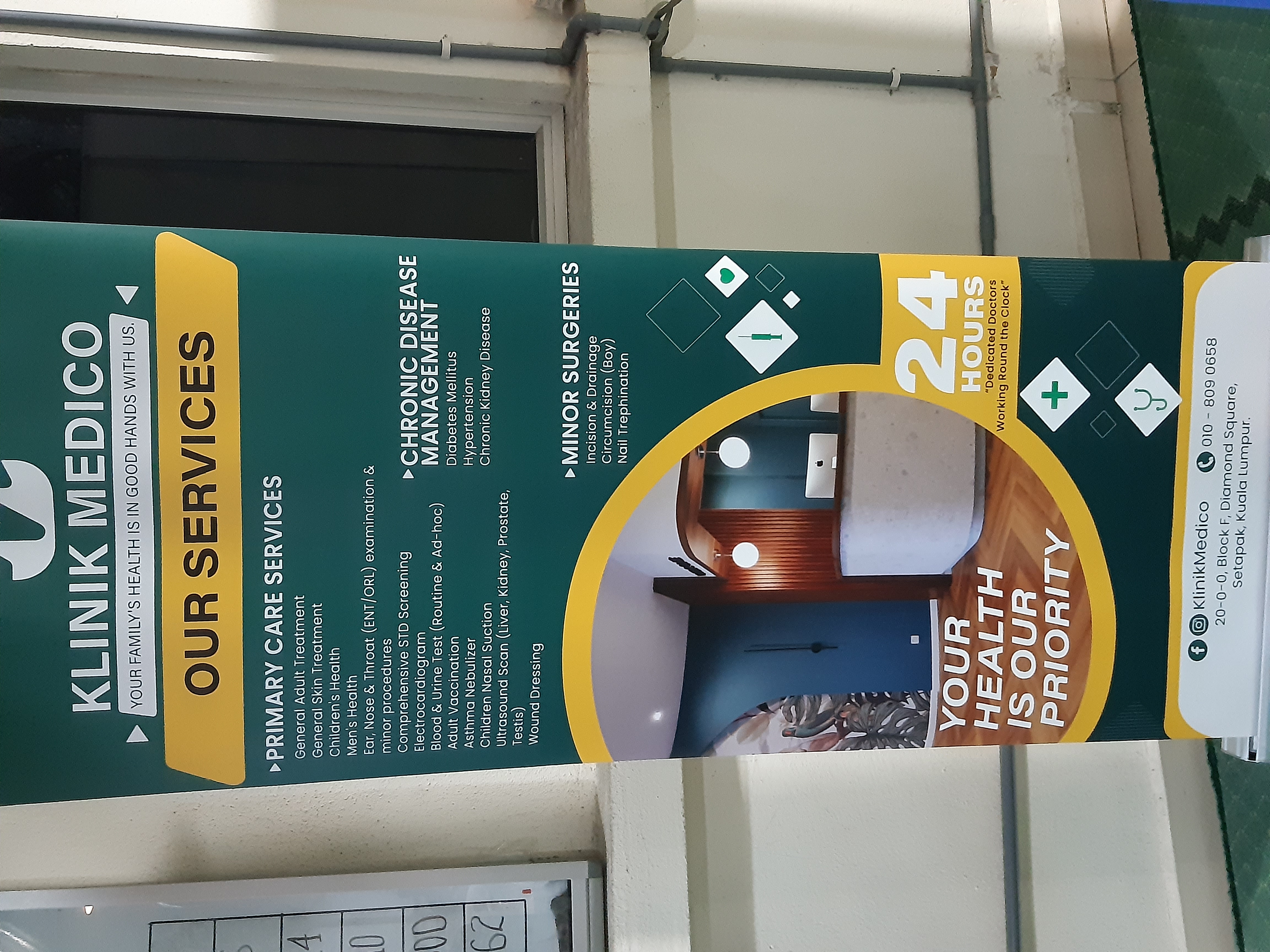 Senarai rawatan kesihatan yang ditawarkan oleh Klinik Medico, Diamond Square, Jalan Gombak, Setapak, Kuala Lumpur.
