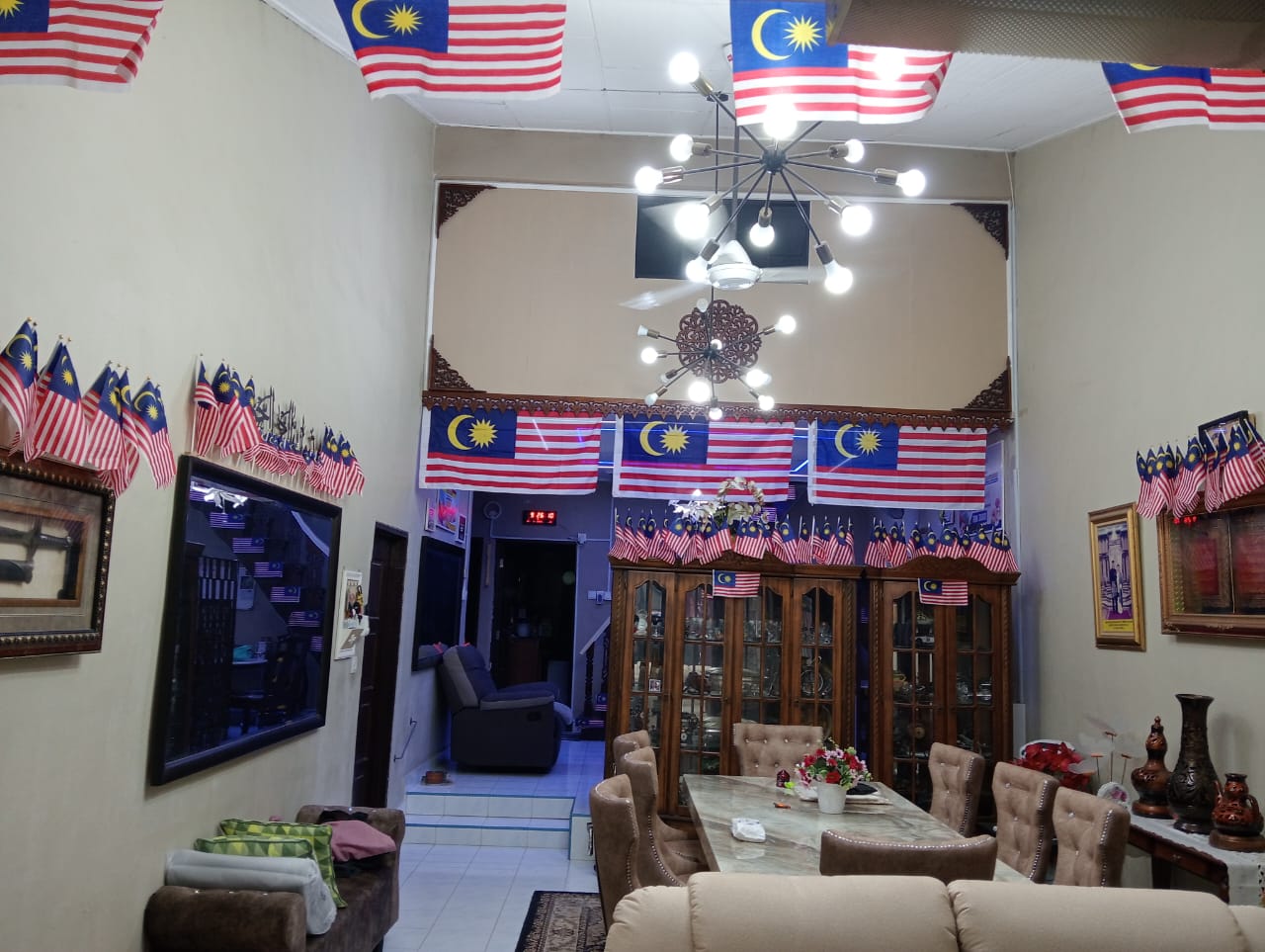 RUANG tamu turut dihias dengan tema kemerdekaan.