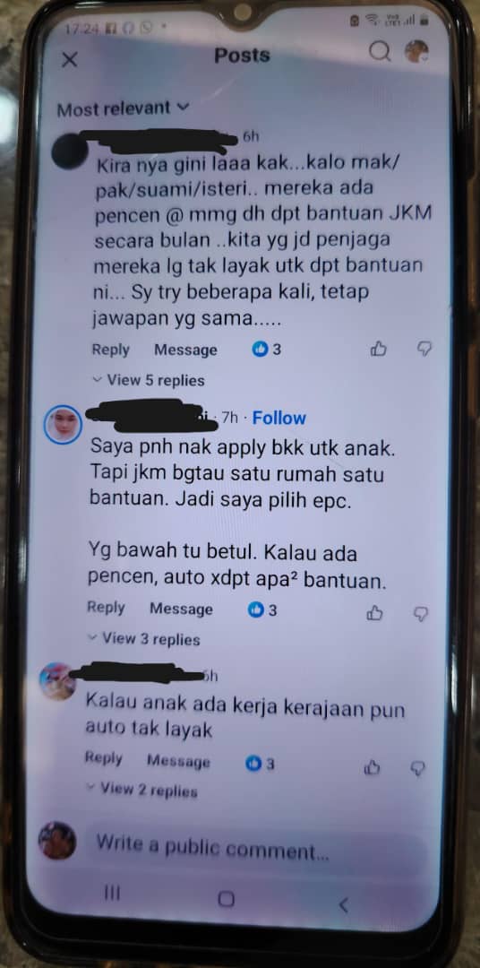 Bantuan diumumkan, tetapi tidak sampai kepada golongan yang paling memerlukan. Ramai juga yang menyuarakan rasa sedih dengan syarat syarat yang ketat dan tak masuk akal.