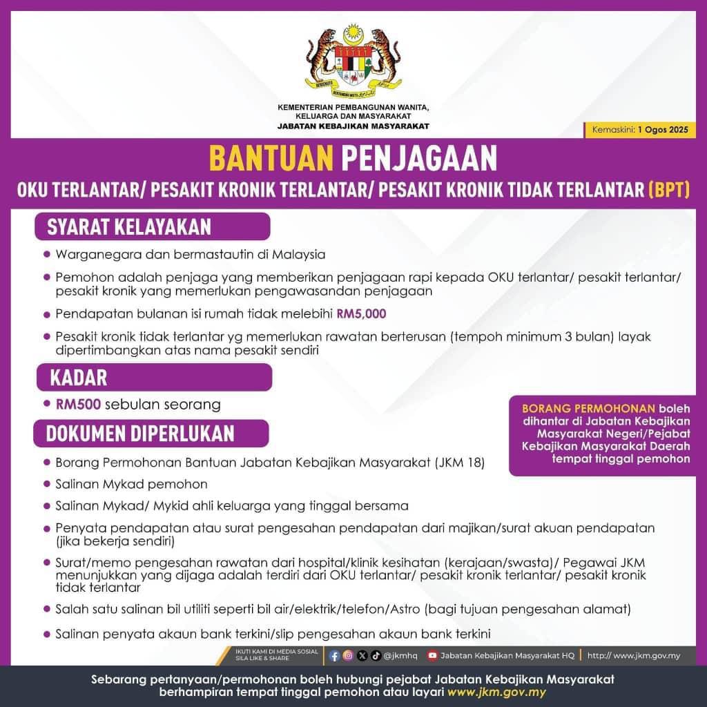Kerajaan sering mengumumkan pelbagai bantuan untuk rakyat yang memerlukan. Antaranya BINGKAS 3.0 dan Bantuan Penjagaan RM500 sebulan yang diuar-uarkan sebagai sokongan kepada penjaga pesakit terlantar, OKU dan pesakit kronik.