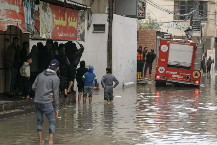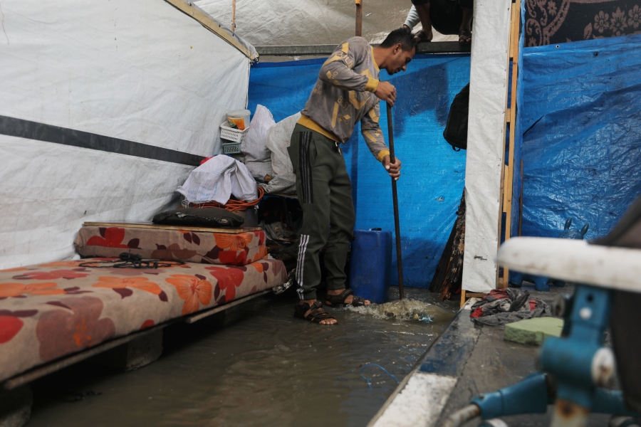 Hujan lebat pada 12 Disember 2025 telah membanjiri khemah dan tempat perlindungan dengan air serta limpahan najis.