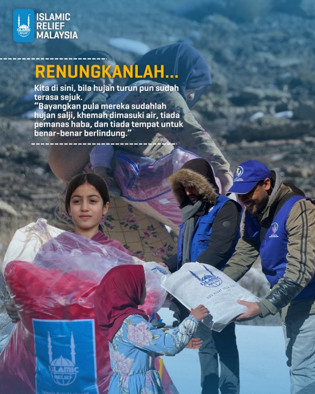 "Sokongan kepada Kempen Rayuan Musim Sejuk Islamic Relief Malaysia akan memastikan mereka menerima pakaian musim sejuk, selimut, tilam, pek makanan dan bantuan tunai yang amat mereka perlukan.”