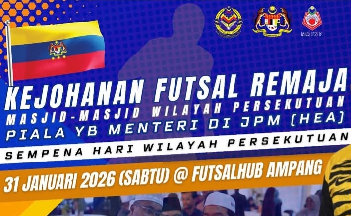 Pertandingan futsal remaja yang akan diadakan sempena Karnival Masjid Madani pada 31 Januari 2026 di FutsalHub, Ampang ini bagi meraikan sambutan Hari Wilayah Persekutuan dijangka menarik dengan penyertaan para remaja kawasan sekitar.