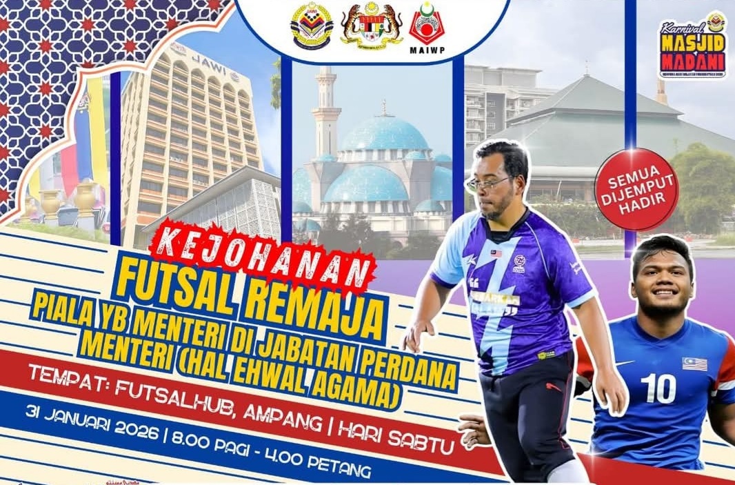 Sementara itu, hebat dan syabas apabila adanya Kejohanan Futsal Remaja Antara Masjid-Masjid Wilayah Persekutuan bagi merebut Piala Menteri di Jabatan Perdana Menteri (Hal Ehwal Agama).