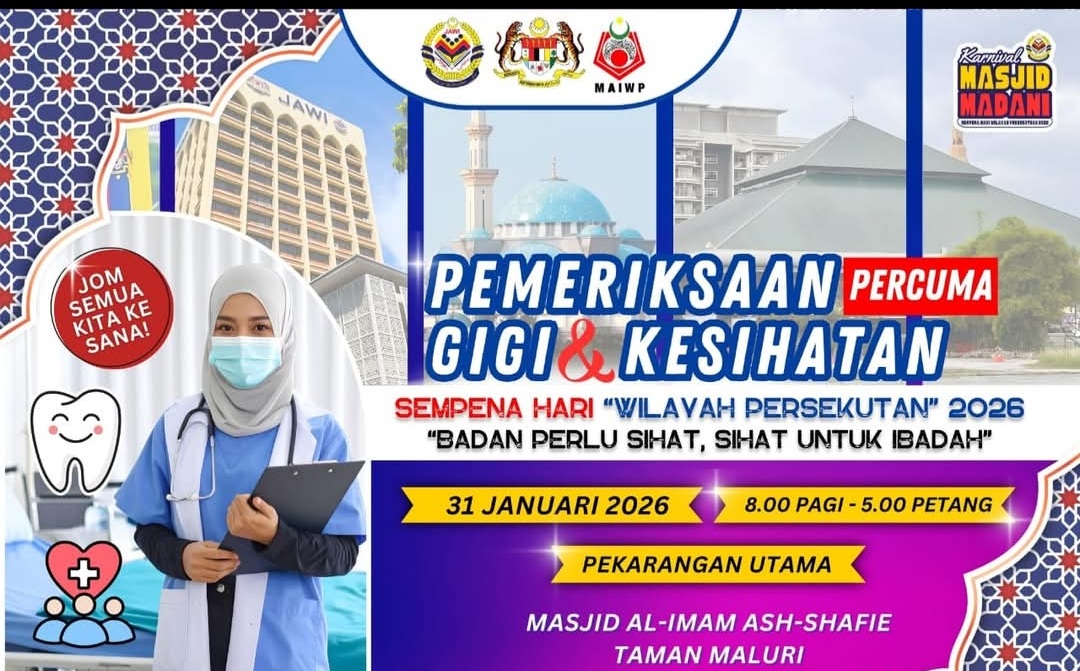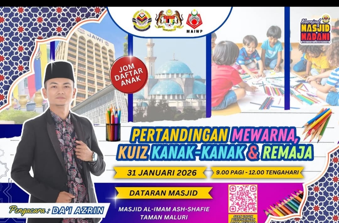 Jom ke Karnival Masjid Madani yang akan diadakan pada 31 Januari 2026 ini di Masjid Al-Imam Ash-Shafie,Taman Maluri pada seawal 4.30 pagi dengan pelbagai program menarik yang telah diatur sempena Hari Wilayah Persekutuan.