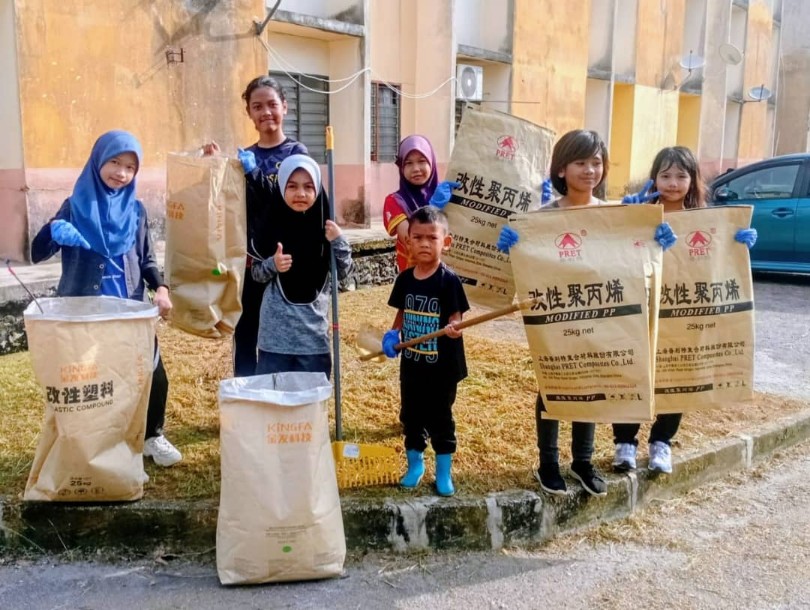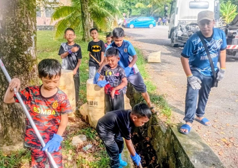 Kanak-kanak turut mengambil bahagian dalam program gotong royong Apartmen Seri Seroja.