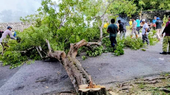 Kerjasama berpasukan memudahkan kerja-kerja gotong royong termasuk menumbangkan pokok yang besar.
