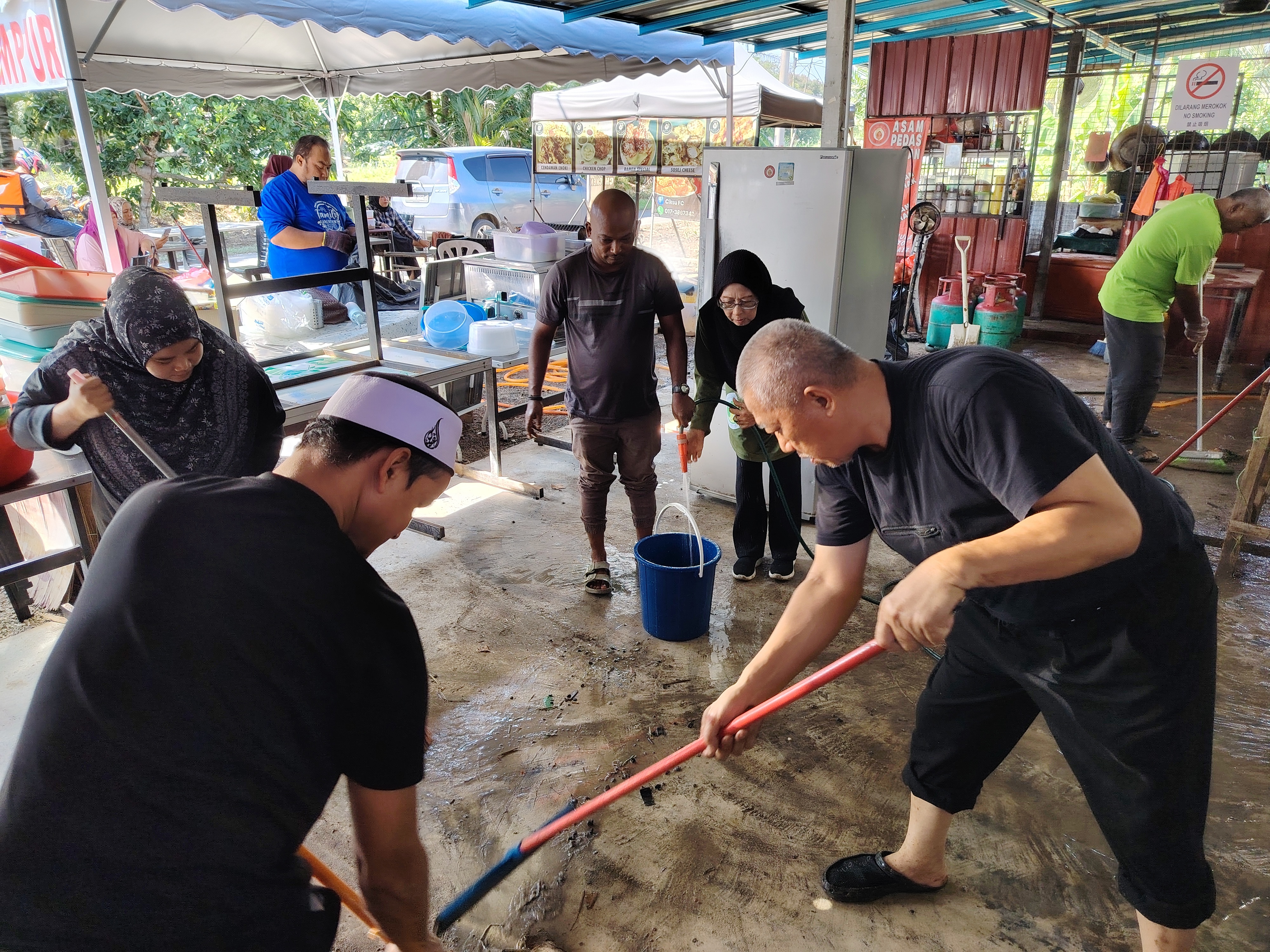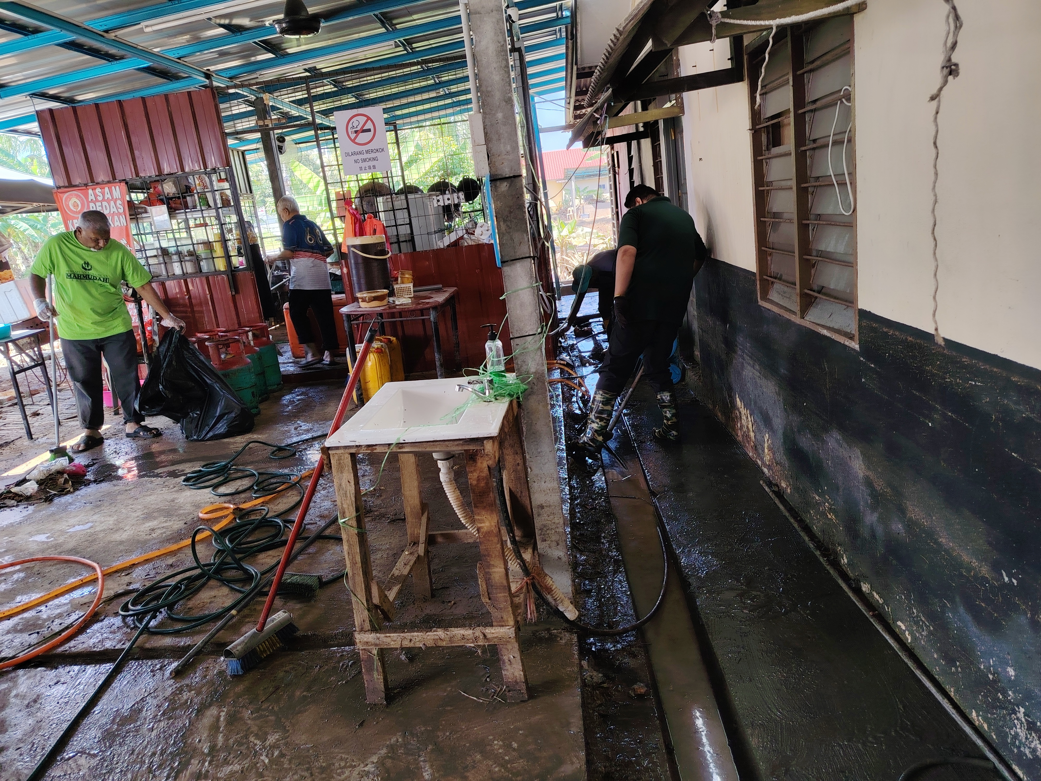 bantuan membersihkan rumah mangsa banjir, pusat tahfiz atau sekolah pondok