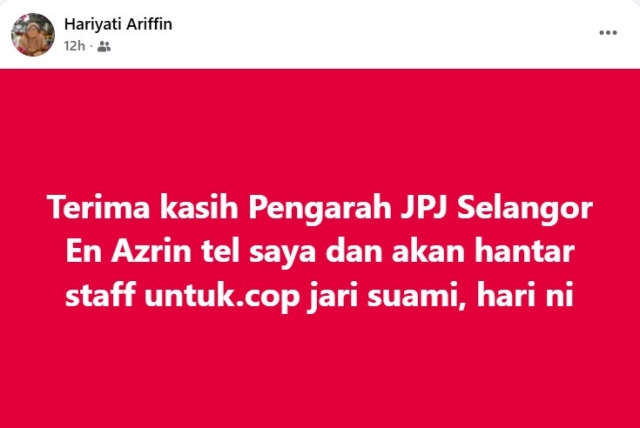 Terima kasih sekali lagi JPJ -- anda bukan sekadar jalankan tugas, tapi benar-benar menyentuh hati kami sekeluarga. ❤️ - KitaReporters