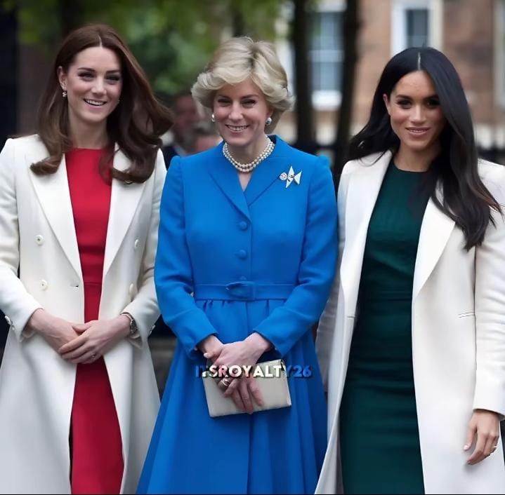 Lady Diana dengan dua menantu Kate dan Meghan. Kalau masih hidup tentu anaknya tidak terpisah negara.