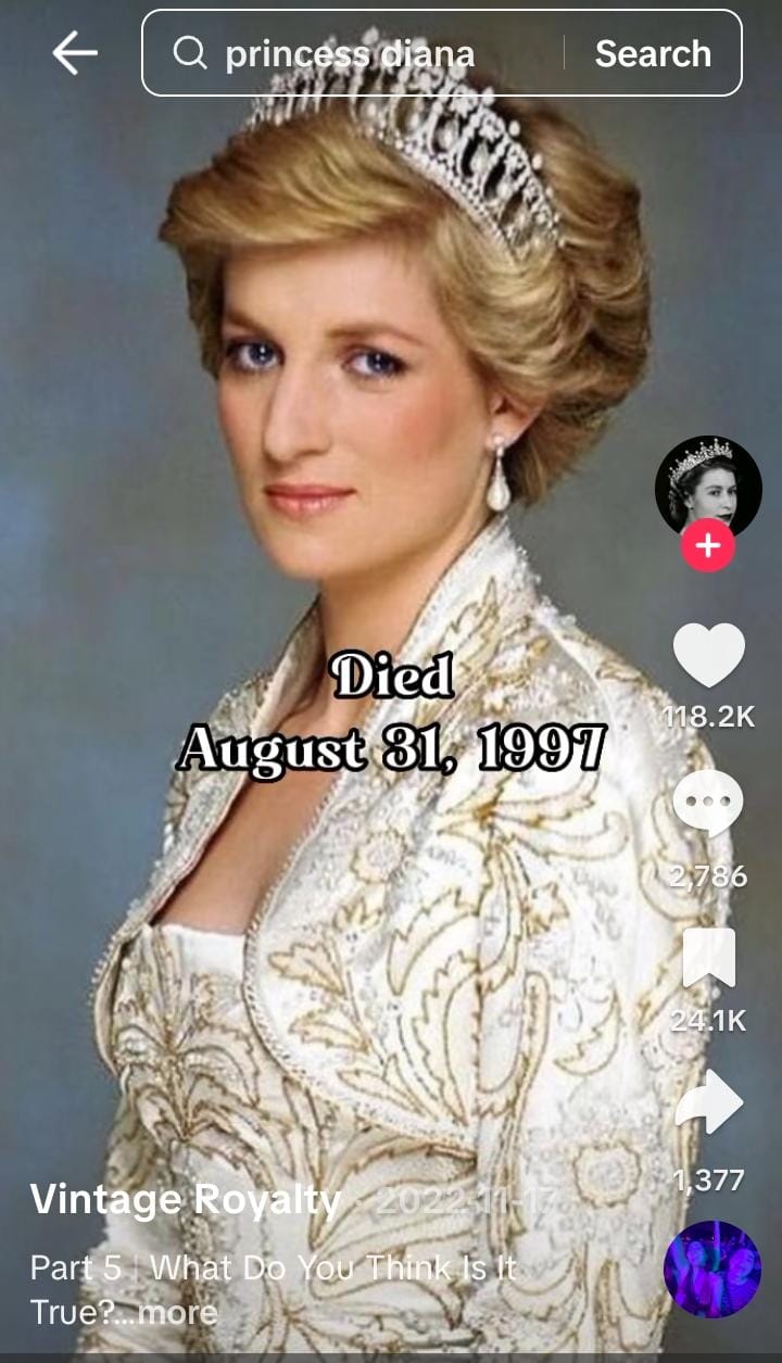 Dalam sejarah akan mencatatkan bagaimana Diana diabaikan sebaik saja lafaz nikah serta perselingkuhan suaminya sampai dia bercerai dan mati selepas terbabit kemalangan jalan raya di dalam terowong di Paris, yang kemudian digelar kota cinta oleh sejarahwan media