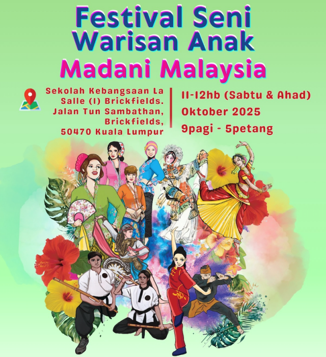 Semangat inilah yang menjadi tunjang penganjuran Festival Seni Warisan Anak Madani 2025, yang berlangsung penuh meriah di Sekolah Kebangsaan (SK) La Salle, Brickfields pada 11-12 Oktober 2025.