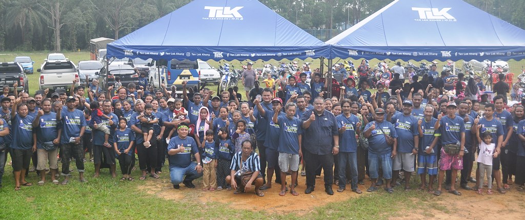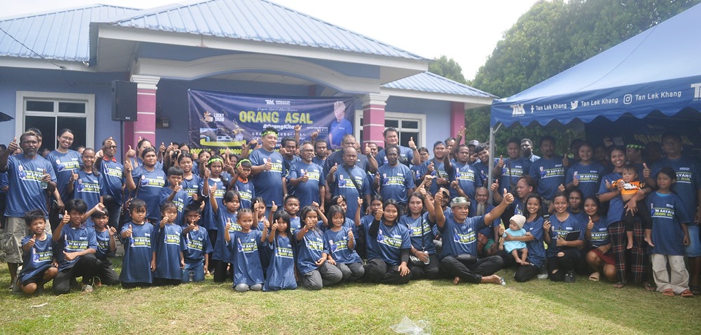 Sebahagian penduduk Kampung Sri Tempayan, Bekok yang hadir ke Program Ramah Mesra Bersama Orang Asal bergambar kenangan bersama Datuk Tan Lek Khang (duduk tiga dari kanan).