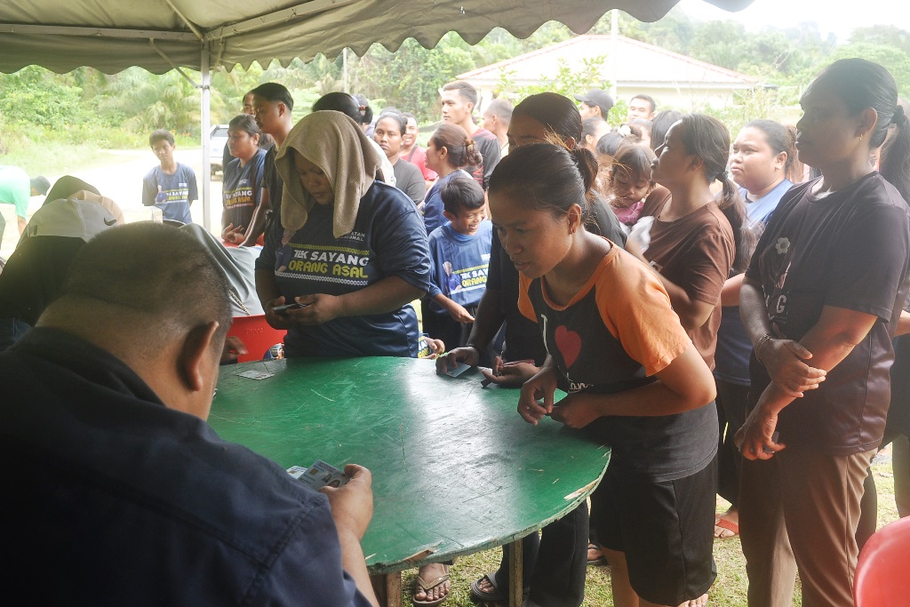 Penduduk Kampung Selai mendaftar untuk mendapatkan nombor cabutan bertuah yang menaawarka hadia barangan elektrik dan motosikal.