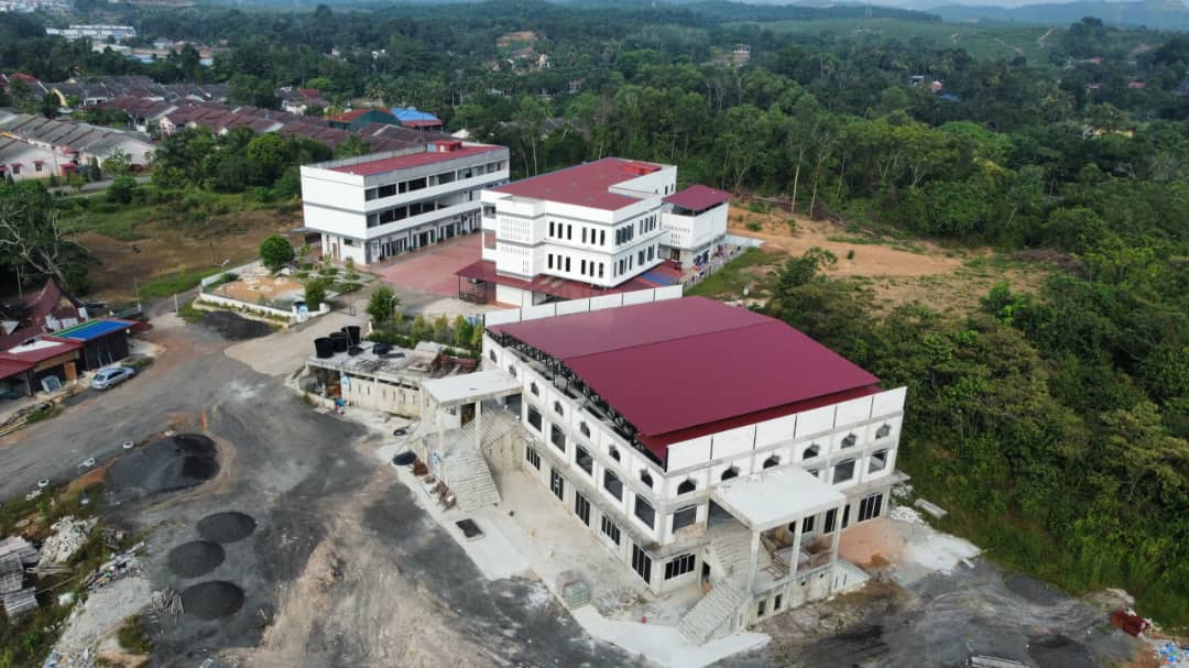 Masjid Madrasah Tahfiz Al-Quran Ar-Rasyidin di Alor Gajah, Melaka yang sedang dalam pembinaan pada awal 2025.